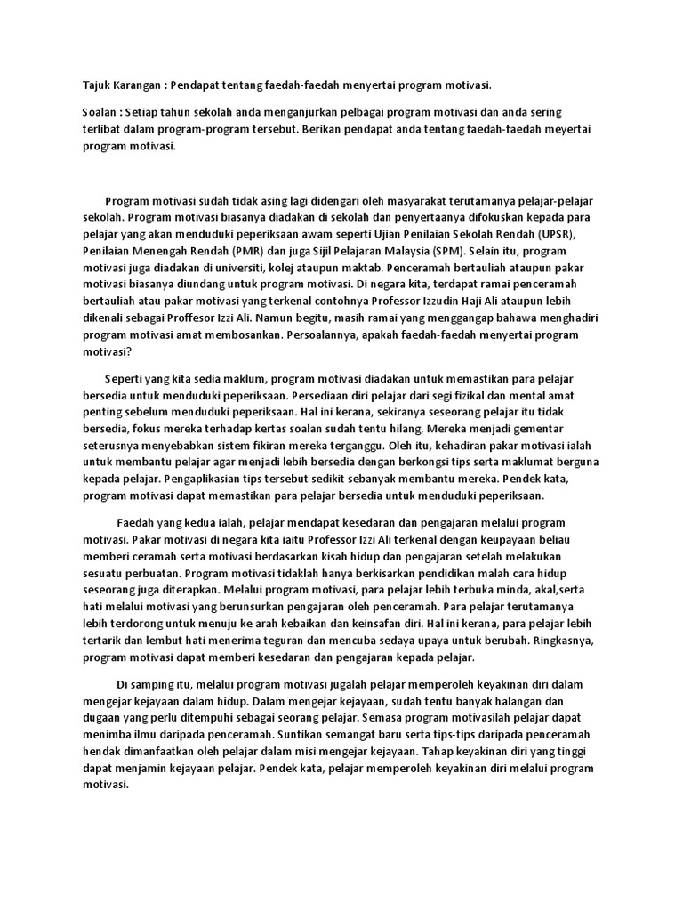Tajuk Karangan Pendapat Tentang Faedah Faedah Menyertai Program Motivasi Pdf